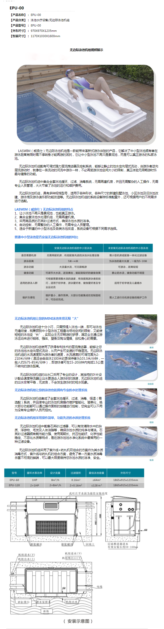泳池循環(huán)過(guò)濾設(shè)備 有兩種可供挑選:一種是以泳池過(guò)濾砂缸、循環(huán)水泵、石英砂為主的傳統(tǒng)泳池過(guò)濾設(shè)備;一種是以泳池一體機(jī)為主的無(wú)機(jī)房一體泳池過(guò)濾設(shè)備,設(shè)備類型有壁掛式、地埋式、平嵌式、臺(tái)階式的?! 鹘y(tǒng)砂缸 一體式 泳池消毒設(shè)備 有許多品種可供挑選:投藥計(jì)量泵、投藥器、泳池消毒藥劑、投藥桶、臭氧發(fā)生器、鹽氯機(jī)、銅銀離子發(fā)生器 水質(zhì)監(jiān)測(cè)設(shè)備 水質(zhì)監(jiān)控儀、驗(yàn)水合 水下照明設(shè)備 泳池水