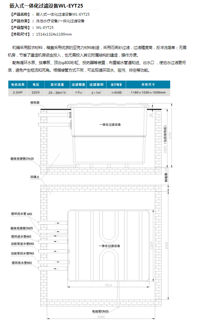 泳池循環(huán)過濾設(shè)備 有兩種可供挑選:一種是以泳池過濾砂缸、循環(huán)水泵、石英砂為主的傳統(tǒng)泳池過濾設(shè)備;一種是以泳池一體機為主的無機房一體泳池過濾設(shè)備,設(shè)備類型有壁掛式、地埋式、平嵌式、臺階式的。 傳統(tǒng)砂缸 一體式 泳池消毒設(shè)備 有許多品種可供挑選:投藥計量泵、投藥器、泳池消毒藥劑、投藥桶、臭氧發(fā)生器、鹽氯機、銅銀離子發(fā)生器 水質(zhì)監(jiān)測設(shè)備 水質(zhì)監(jiān)控儀、驗水合 水下照明設(shè)備 泳池水