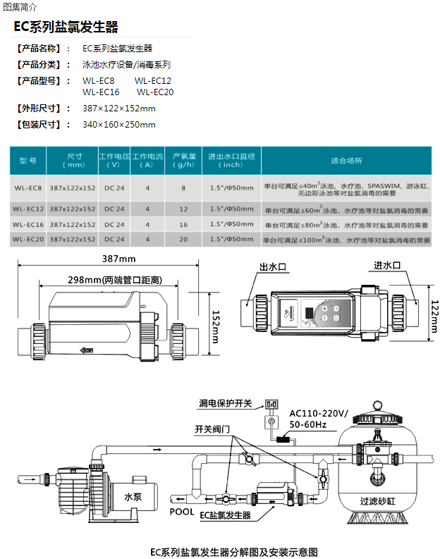 泳池循環(huán)過(guò)濾設(shè)備 有兩種可供挑選:一種是以泳池過(guò)濾砂缸、循環(huán)水泵、石英砂為主的傳統(tǒng)泳池過(guò)濾設(shè)備;一種是以泳池一體機(jī)為主的無(wú)機(jī)房一體泳池過(guò)濾設(shè)備,設(shè)備類(lèi)型有壁掛式、地埋式、平嵌式、臺(tái)階式的?! 鹘y(tǒng)砂缸 一體式 泳池消毒設(shè)備 有許多品種可供挑選:投藥計(jì)量泵、投藥器、泳池消毒藥劑、投藥桶、臭氧發(fā)生器、鹽氯機(jī)、銅銀離子發(fā)生器 水質(zhì)監(jiān)測(cè)設(shè)備 水質(zhì)監(jiān)控儀、驗(yàn)水合 水下照明設(shè)備 泳池水
