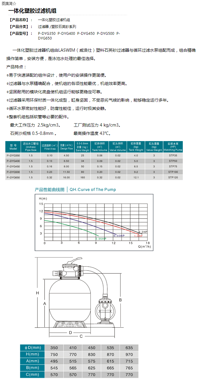 泳池循環(huán)過(guò)濾設(shè)備 有兩種可供挑選:一種是以泳池過(guò)濾砂缸、循環(huán)水泵、石英砂為主的傳統(tǒng)泳池過(guò)濾設(shè)備;一種是以泳池一體機(jī)為主的無(wú)機(jī)房一體泳池過(guò)濾設(shè)備,設(shè)備類型有壁掛式、地埋式、平嵌式、臺(tái)階式的?! 鹘y(tǒng)砂缸 一體式 泳池消毒設(shè)備 有許多品種可供挑選:投藥計(jì)量泵、投藥器、泳池消毒藥劑、投藥桶、臭氧發(fā)生器、鹽氯機(jī)、銅銀離子發(fā)生器 水質(zhì)監(jiān)測(cè)設(shè)備 水質(zhì)監(jiān)控儀、驗(yàn)水合 水下照明設(shè)備 泳池水