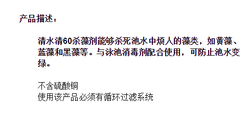 泳池循環(huán)過濾設(shè)備 有兩種可供挑選:一種是以泳池過濾砂缸、循環(huán)水泵、石英砂為主的傳統(tǒng)泳池過濾設(shè)備;一種是以泳池一體機(jī)為主的無(wú)機(jī)房一體泳池過濾設(shè)備,設(shè)備類型有壁掛式、地埋式、平嵌式、臺(tái)階式的?! 鹘y(tǒng)砂缸 一體式 泳池消毒設(shè)備 有許多品種可供挑選:投藥計(jì)量泵、投藥器、泳池消毒藥劑、投藥桶、臭氧發(fā)生器、鹽氯機(jī)、銅銀離子發(fā)生器 水質(zhì)監(jiān)測(cè)設(shè)備 水質(zhì)監(jiān)控儀、驗(yàn)水合 水下照明設(shè)備 泳池水